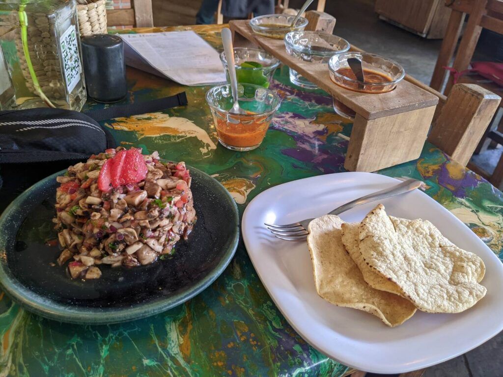 In the evening, try vegan ceviche at the famous vegan restaurant “La Flaca”.